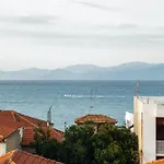 70m²のBeachfront Apartment With A View クシロカストロはサンテラスがあり、Panagia Faneromeniから歩いて5分の場所に位置しています。